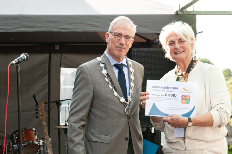 Als klap op de vuurpijl kreeg de voorzitter van de stichting Crea, Trude van Rees, uit handen van de burgemeester een cheque aangeboden van 500,- euro.
